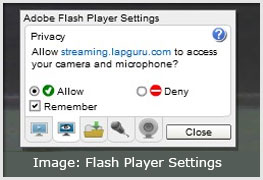 - Access to ports 1935 (RTMP) and 554 (RTSP) of the server fms.lapguru.com (IP: 124.153.94.114). (Required if accessing from a corporate environment with firewalls installed, otherwise this step can be ignored)